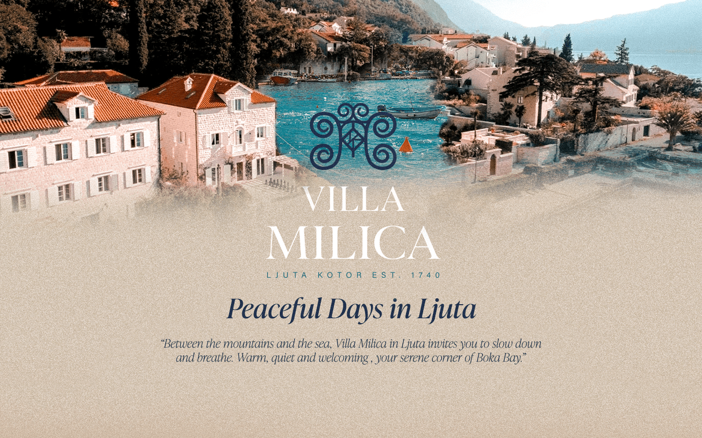 Located in Ljuta, Kotor, Villa Milica represents a contemporary Mediterranean retreat that inspired the creation of a complete visual identity — from logo development to full brand implementation. The branding concept reflects the villa’s authentic coastal character, modern interior design and serene ambiance, translating its architectural and environmental qualities into a distinct visual language.